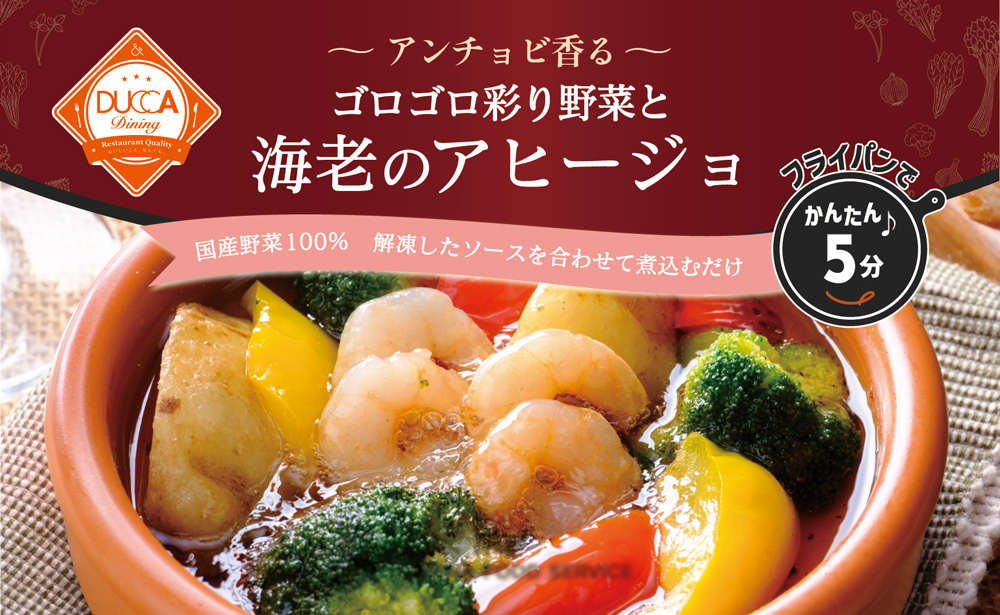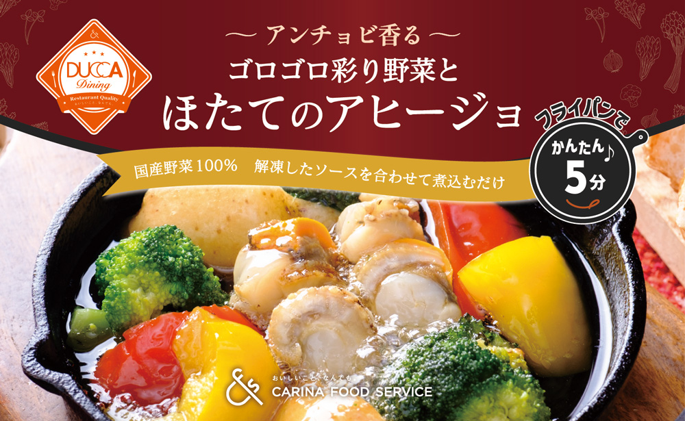 ゴロゴロ彩り野菜とほたてのアヒージョ