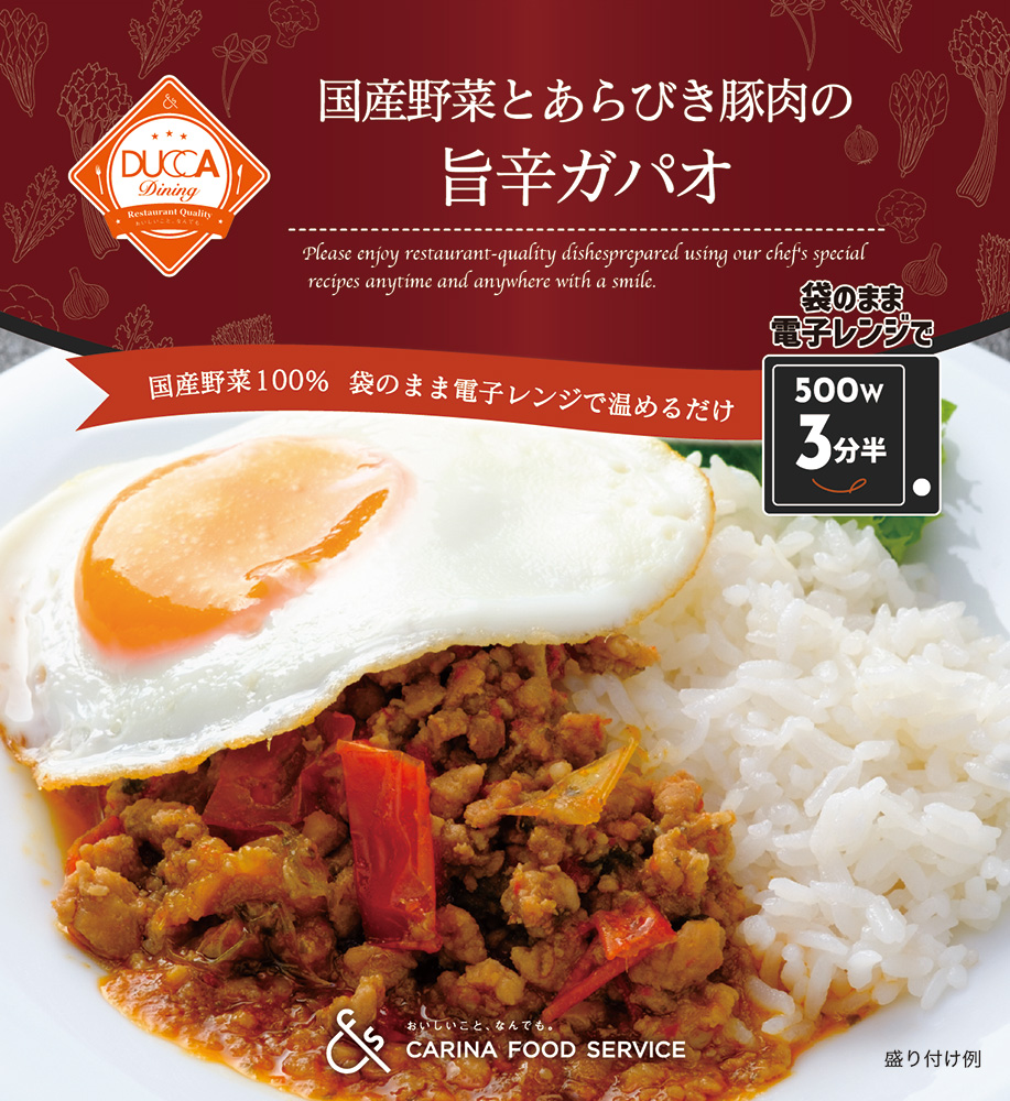 国産野菜とあらびき豚肉の旨辛ガパオ