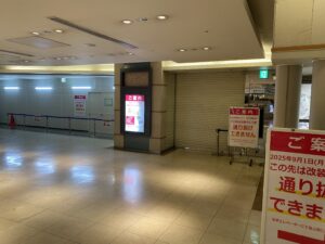 おそばの丸松さんや無印さんへ上がるエスカレーターの部分が現在はこのようになっています。